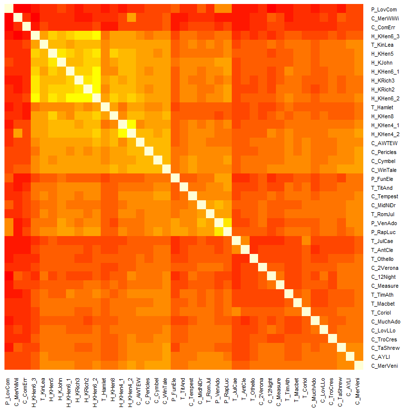 Representation of Shakespeare’s works: their similarity matrix via heat map